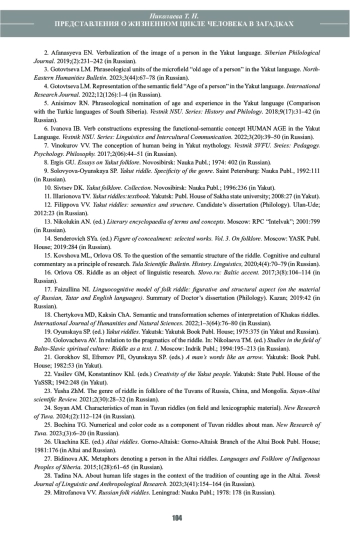 3. Готовцева Л.М. Фразеологические единицы микрополя “старый возраст человека” в якутском языке. Северо-Восточный гуманитарный вестник. 2023;44(3):67-78.