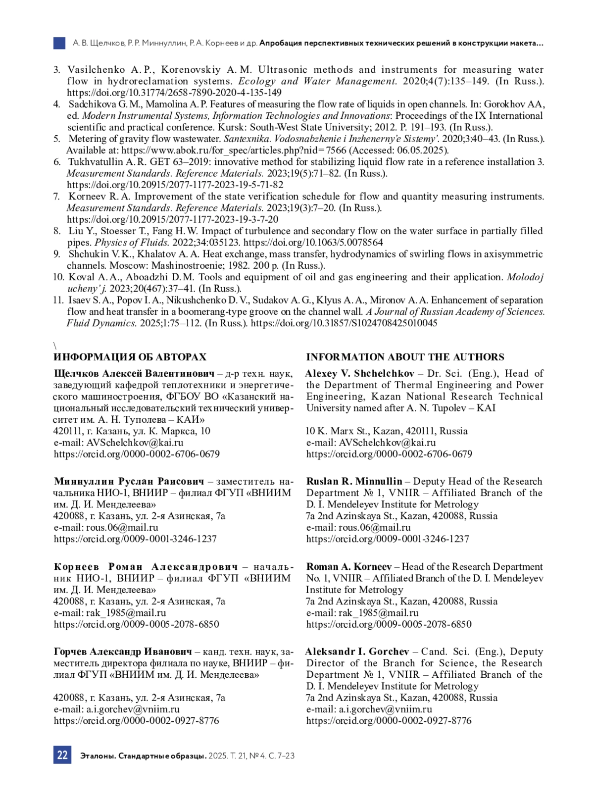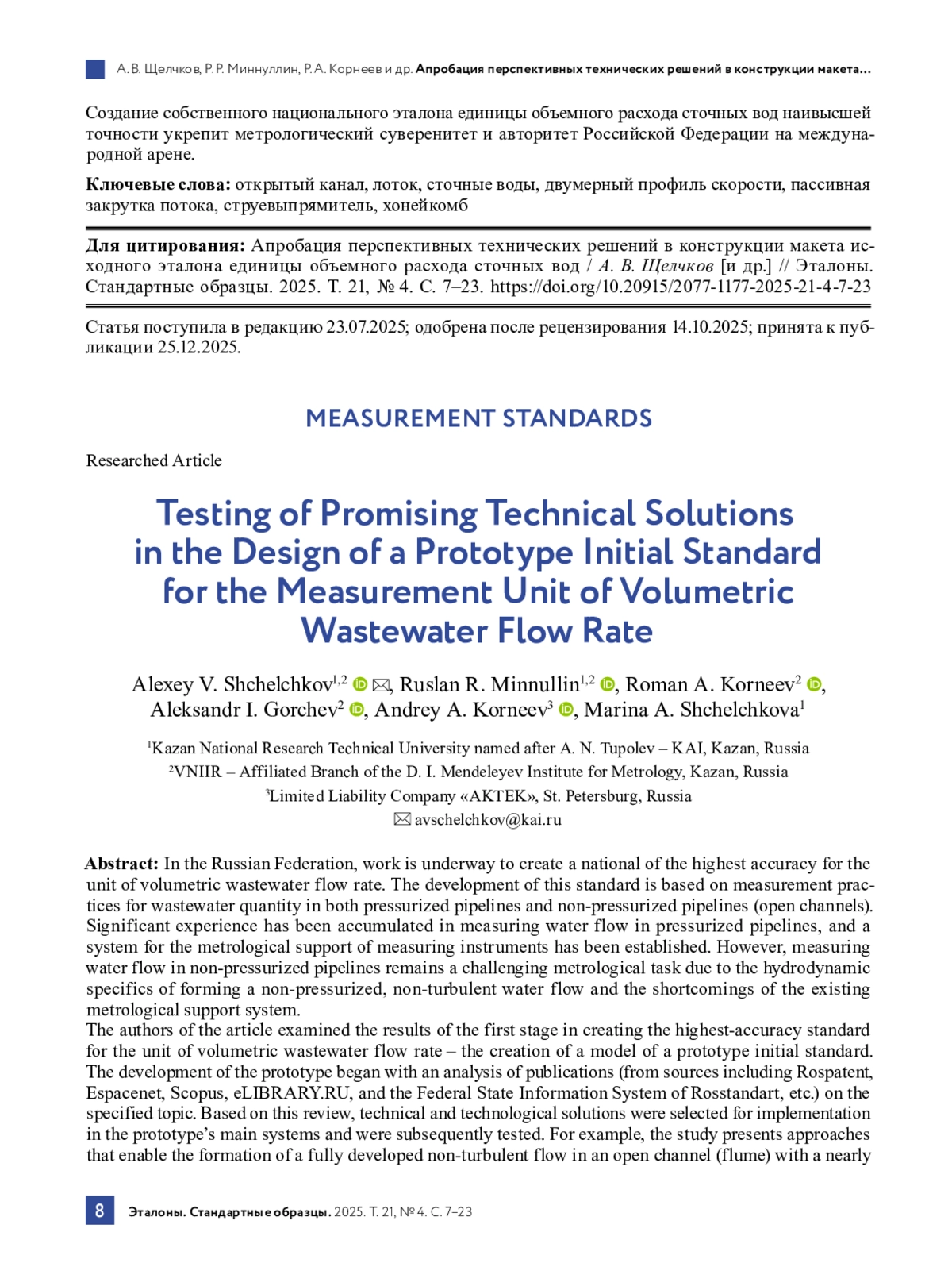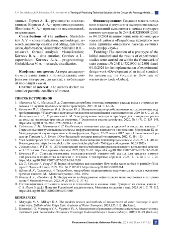 2. Костенко И. Г., Мартюгин В. А., Вязьмин Ю. А. Измерение параметров безнапорных потоков сточных вод: приборный парк // Наилучшие доступные технологии водоснабжения и водоотведения. 2019. № 5. С. 21-29.