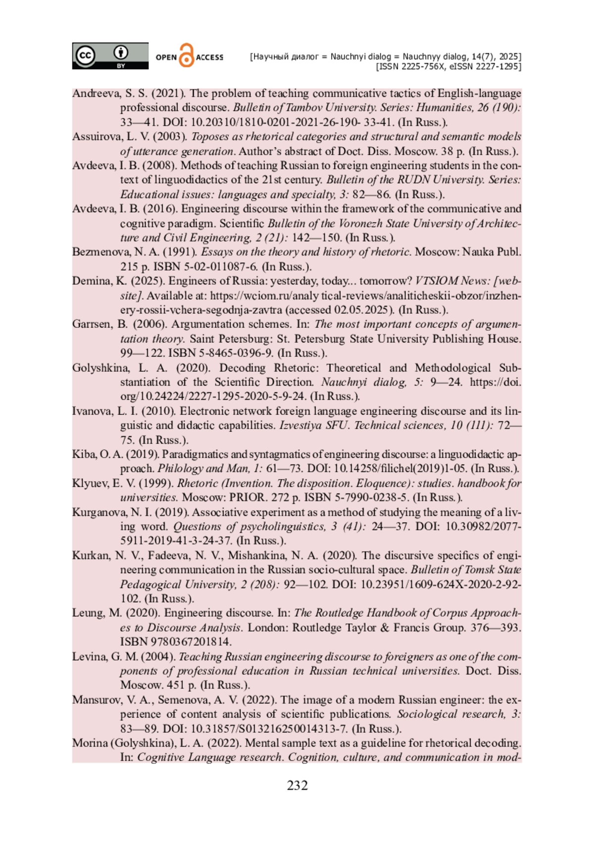 17. Куркан Н. В. Дискурсивная специфика инженерной коммуникации в русском социокультурном пространстве / Н. В. Куркан, Н. В. Фадеева, Н. А. Мишанкина // Вестник Томского государственного педагогического университета. - 2020. - № 2 (208). - С. 92-102. - https://doi.org/10.23951/1609-624X-2020-2-92-102.