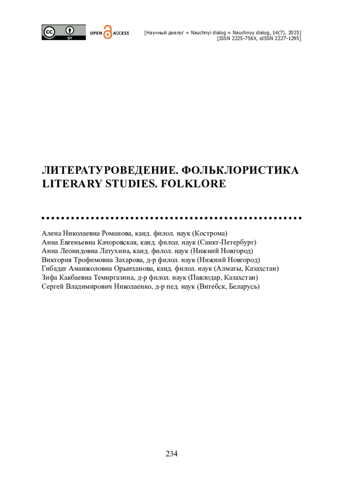 Данная статья посвящена проблеме идейнохудожественного содержания орнитологической символики в русской прозе ХХ века. Объектами исследования являются произведения И. С. Шмелева, И. А. Бунина, Б. К. Зайцева, М. А. Осоргина, Л. Ф. Зурова, В. П. Астафьева, Е. Носова, Б. Васильева, Т. Толстой, объединенные включением в систему повествования образов птиц. Цель данной работы состоит в выявлении многомерной символической значимости орнитологических образов в русской прозе ХХ века: в осмыслении своеобразия индивидуально-авторского художественного видения писателей и объединяющего русскую литературу национального «кода прочтения». Актуальность исследования обусловлена вниманием современного литературоведения к аксиологически значимым темам русской литературы, к восприятию отечественного литературного процесса в его неделимой целостности. Научная новизна работы видится в том, что анализ образов птиц позволяет выявить особую роль данного художественного образа как одного из доминантных в национальной картине мира. Авторы приходят к выводу о том, что птица чаще всего в русской литературе ХХ века представлена как идеальный образ — «мерило» нравственности человека. Показано, что в разные исторические периоды доминантными становятся определенные аспекты символизации: духовное просветление, отождествление с Родиной и домом, осмысление подвига и героизма, экологические проблемы, метафоризация персонажей-орнитоморфов.