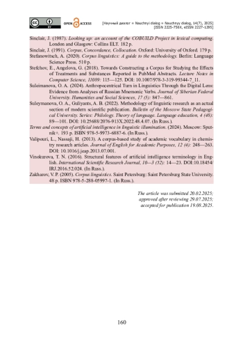 13. Сулейманова О. А. Методика лингвистического исследования как актуальный раздел современной научной публикации / О. А. Сулейманова, А. Б. Гулиянц // Вестник МГПУ. Серия : Филология. Теория языка. Языковое образование. - 2022. - № 4 (48). - С. 89-101. - https://doi.org/10.25688/2076-913X.2022.48.4.07.