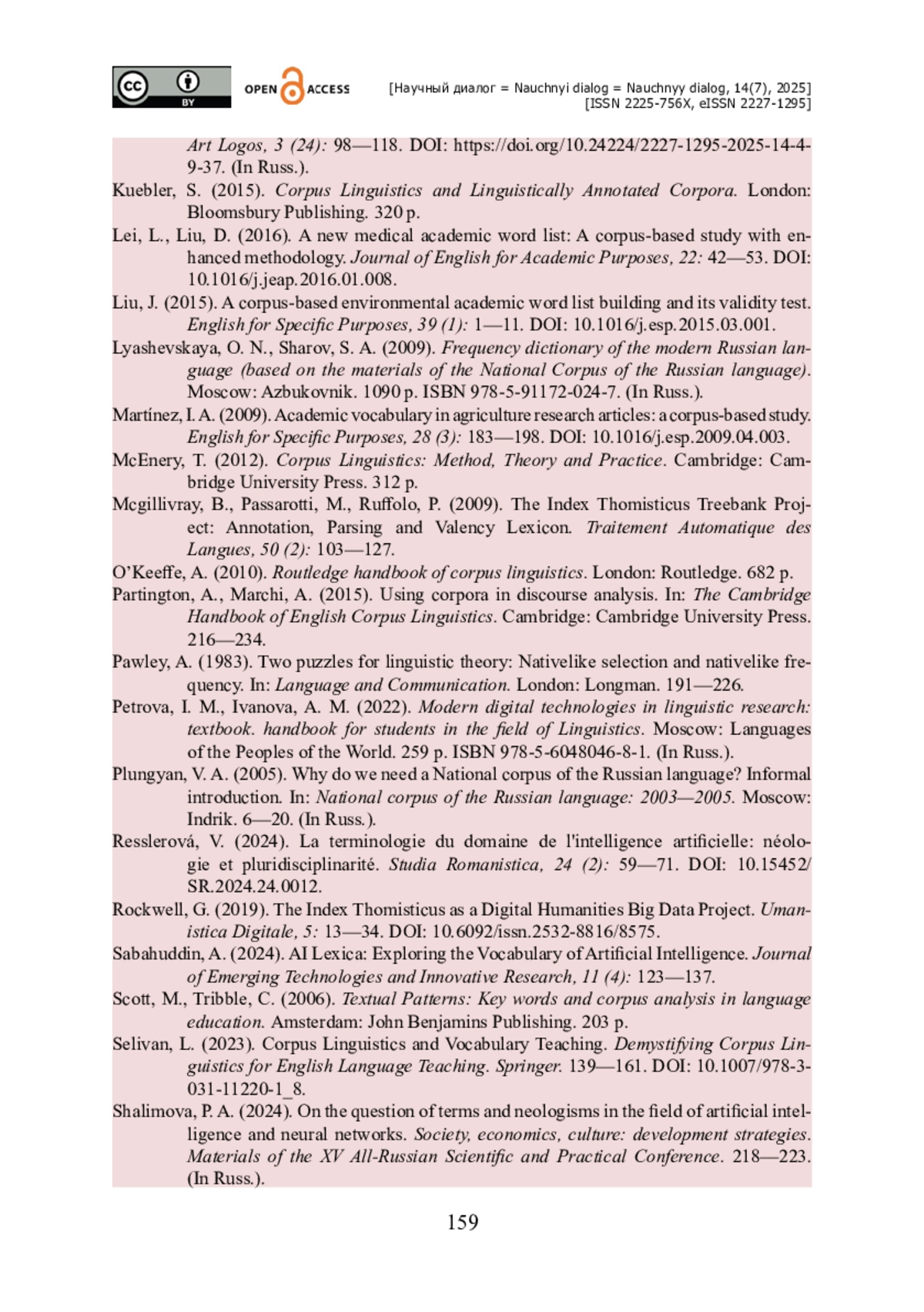 19. Corpus Linguistics and Corpus-Based Research and Its Implication in Applied Linguistics : A Systematic Review / A. M. S. Al-Hamzi, A. Gougui, Y. Sari Amalia, T. Suhardijanto // PAROLE : Journal of Linguistics and Education. - 2020. - Vol. 10. - № 2. - Pp. 176-181.