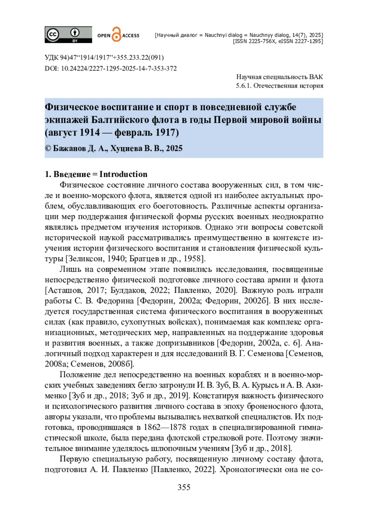 5. Зуб И. В. Становление физической подготовки на флоте и появление комплексных соревнований по военно-прикладным видам спорта / И. В. Зуб, В. А. Курысь, А. В. Акименко // Мир науки, культуры, образования. - 2018. - № 4 (71). - С. 48-50. - https://doi.org/10.17513/snt.38164.