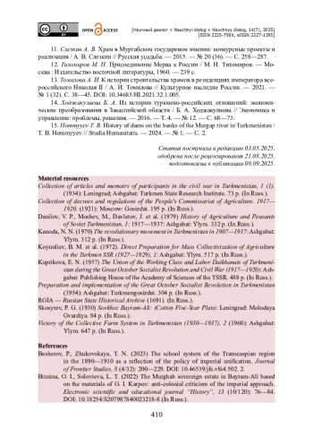 9. Рахимов Н. Ирригационные работы в царском имении в Мургабе / Н. Рахимов, Р. Шамурадова // Академическая публицистика. - 2024. - № 11. - С. 192-195.