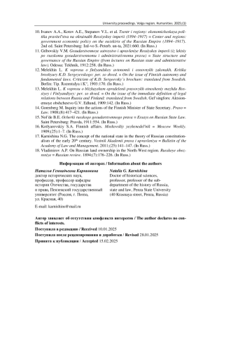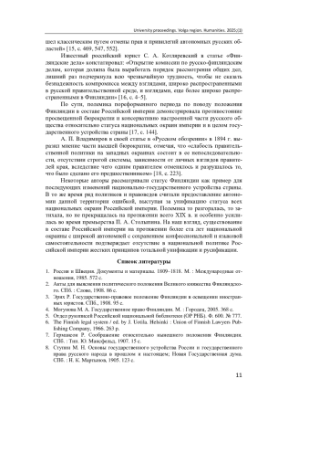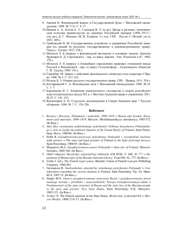 9. Авинов Н. Финляндский вопрос в Государственной Думе // Московский еженедельник. 1908. № 7 (3). С. 8-17.