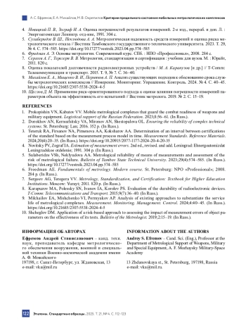 10. Щеглов Д. М. Применение риск-ориентированного подхода к оценке влияния погрешности измерений параметров объекта на эффективность его испытаний // Вестник метролога. 2019. № 2. С. 15-19.