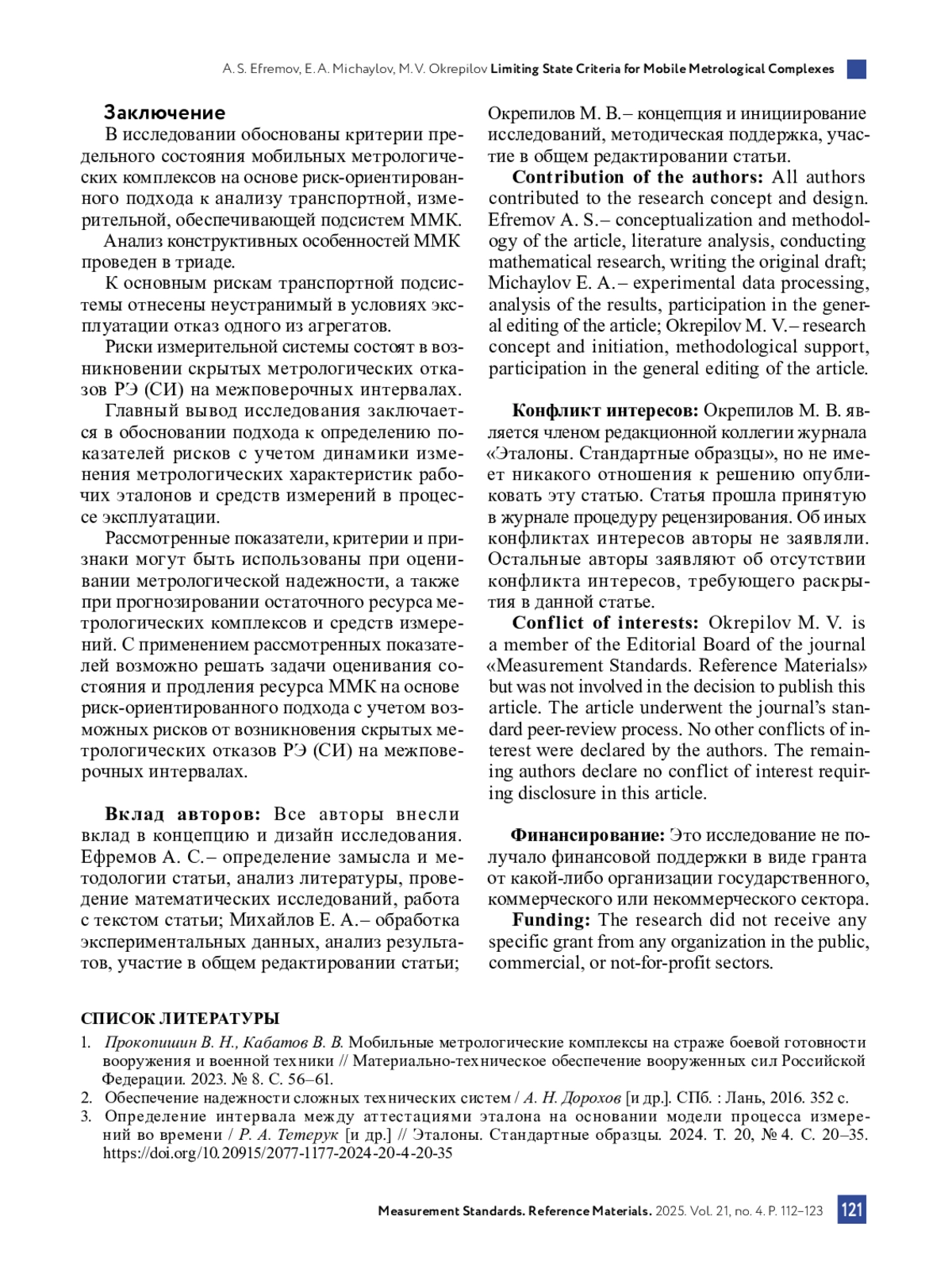 9. Михайлов Е. А., Мищенко В. И., Пермяков А. П. Анализ существующих подходов к обоснованию срока службы метрологических комплексов // Измерение. Мониторинг. Управление. Контроль. 2024. № 4. С. 40-45. DOI: 10.21685/2307-5538-2024-4-5