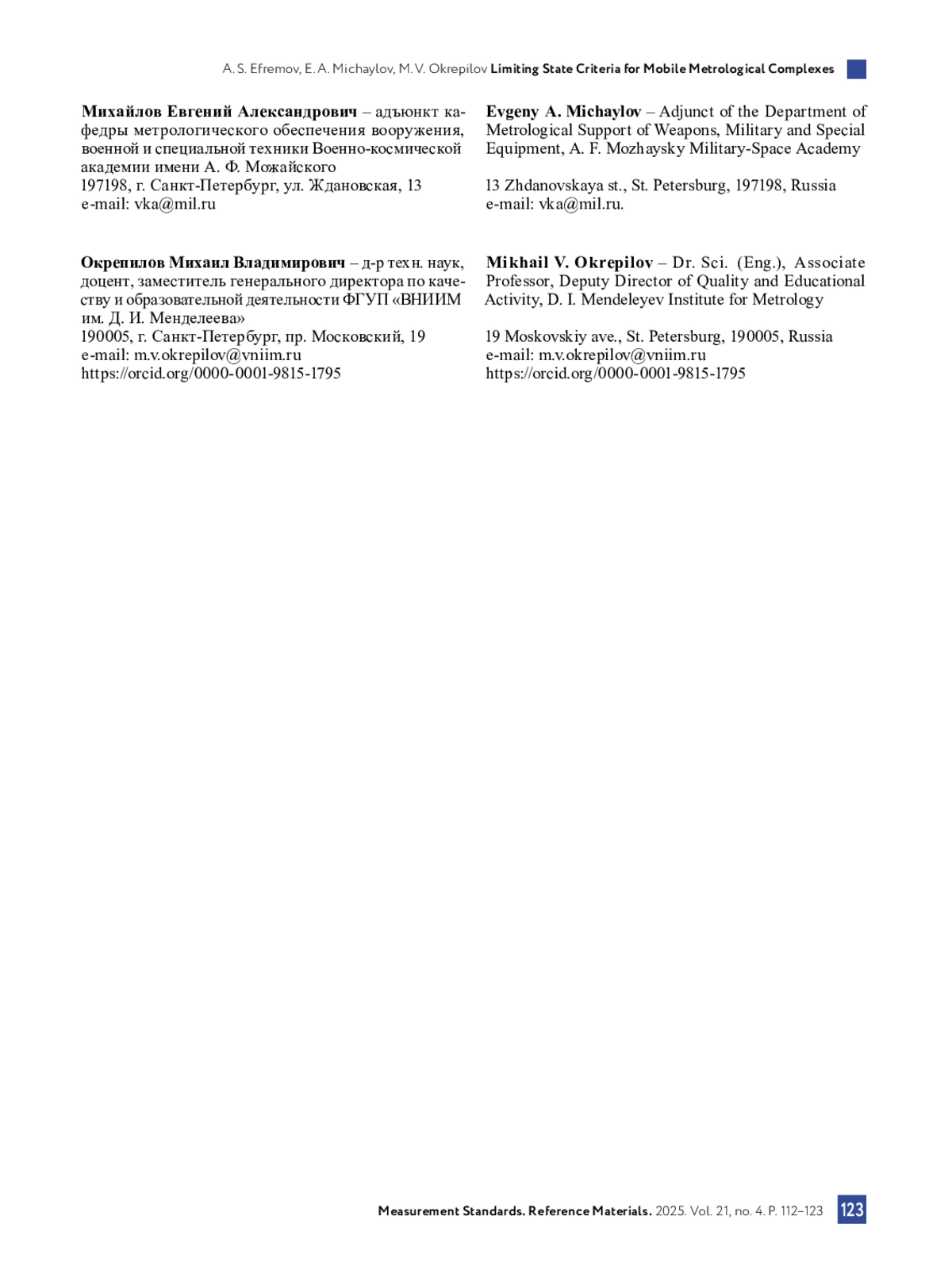 1. Прокопишин В. Н., Кабатов В. В. Мобильные метрологические комплексы на страже боевой готовности вооружения и военной техники // Материально-техническое обеспечение вооруженных сил Российской Федерации. 2023. № 8. С. 56-61.
