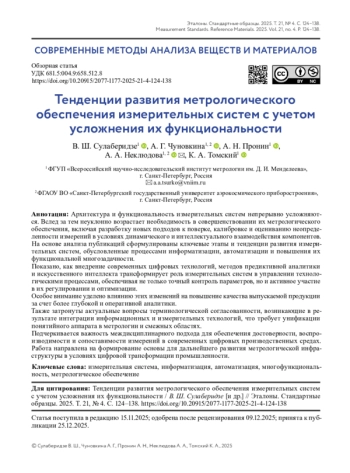Архитектура и функциональность измерительных систем непрерывно усложняются. Вслед за тем неуклонно возрастает необходимость в совершенствовании их метрологического обеспечения, включая разработку новых подходов к поверке, калибровке и оцениванию неопределенности измерений в условиях динамического и интеллектуального взаимодействия компонентов. На основе анализа публикаций сформулированы ключевые этапы и тенденции развития измерительных систем, обусловленные процессами информатизации, автоматизации и повышения их функциональной многозадачности.