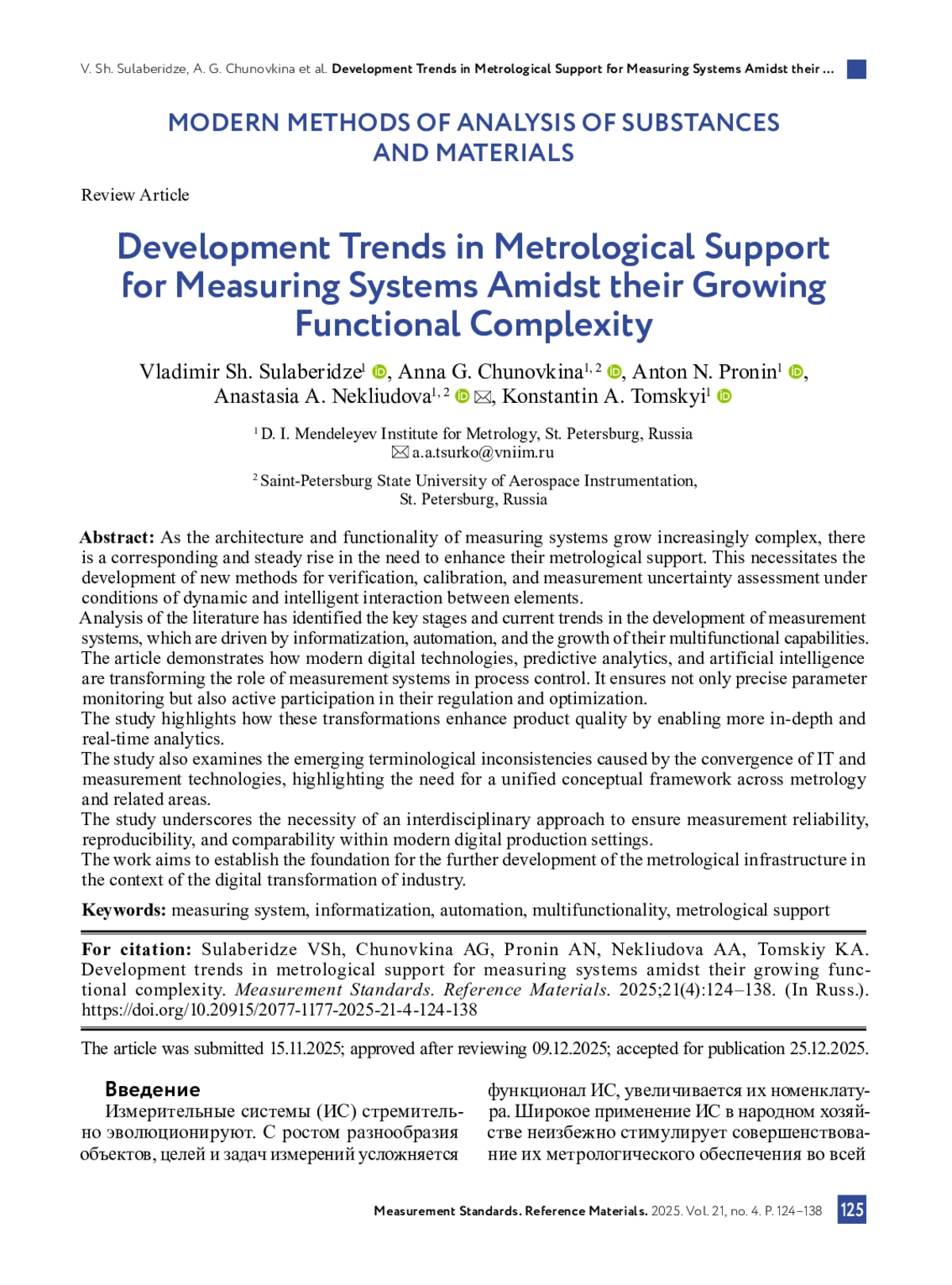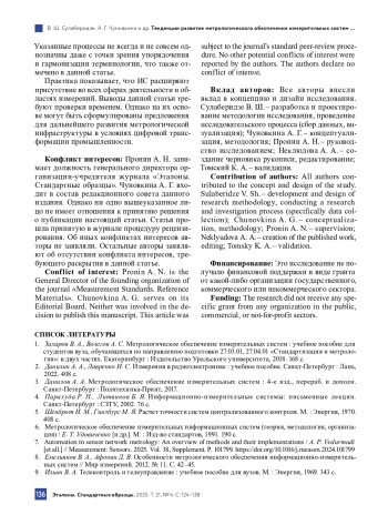 7. Automation in sensor network metrology: An overview of methods and their implementations / A. P. Vedurmudi [et all.] // Measurement: Sensors. 2025. Vol. 38, Supplement. P. 101799. DOI: 10.1016/j.measen.2024.101799