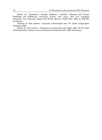 16. Bakhtin, M.M. “K filosofii postupka” [Toward a Philosophy of the Act], in: M.M. Bakhtin, Sobranie sochinenii v 7 t. [Works in 4 Vols.], Vol. 1, eds. S.G. Bocharov, N.I. Nikolaev. Moscow: Russkiye slovari; YaSK Publ., 2008. (In Russian).