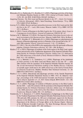 18. Шарков И. Г. b. Паломничество жителей Харьковской губернии во Святую Землю в конце XIX - начале XX вв. при содействии Императорского Православного Палестинского Общества / И. Г. Шарков // Православный Палестинский сборник. Юбилейный выпуск 123. 160-летию со дня рождения преподобномученицы Великой Княгини Елисаветы Феодоровны посвящается / Глав. ред. С. Ю. Житенёв. - Москва : Индрик, 2024. - С. 302-313.