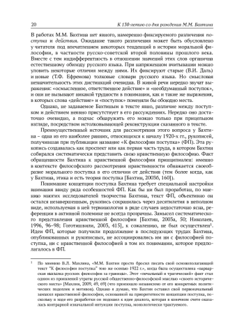 20. Borisova, I.V. “Iznachal’nyj postupok (O nezamechennom sjuzhete nravstvennoj filosofii M.M. Bakhtina)” [The Initial Act (On a Neglected Theme in Mikhail Bakhtin’s Moral Philosophy)], Dostoevskij i mirovaja kul’tura. Filologicheskij zhurnal, 2023, No. 2, pp. 172-224. (In Russian).