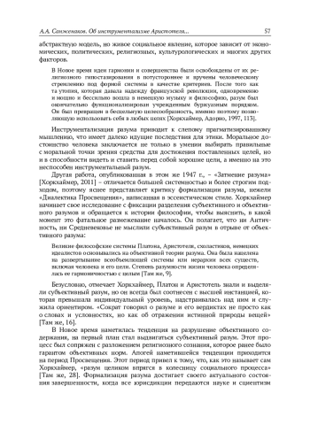 Когда современные философы ищут исторические корни концепции инструментального разума, они чаще всего обращаются к Аристотелю и Юму. Это обусловлено тем фактом, что в текстах обоих обнаруживаются релевантные цитаты. Однако с Аристотелем все не так однозначно. Хотя бы потому, что сам М. Хоркхаймер – один из самых активных критиков инструментализма – отказывается видеть в античной философии катастрофический разрыв между объективным и субъективным разумами, что, по его мнению, приводит к такому порочному явлению, как инструментальный разум. В настоящей статье мы постараемся выяснить, был ли Аристотель инструменталистом или нет.