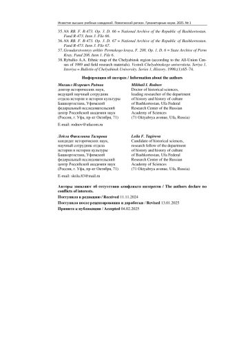 14. Тагирова Л. Ф. Демография и экономика курганских башкир (на материалах переписи 1920 г.) // Городские башкиры: сохранение и развитие родного языка и культуры в условиях этнокультурного и языкового многообразия: материалы XII Всерос. науч.-практ. конф. (г. Уфа, 21 мая 2024 г.) / отв. ред. З. Я. Рахматуллина, Г. Н. Ягафарова. Уфа: ИИЯЛ УФИЦ РАН, 2024. С. 229-233. EDN: CUTSMF