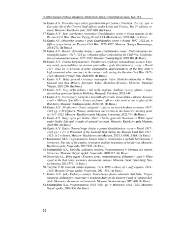 46. Ганин А. В. Кадры Генерального штаба в период Гражданской войны в России 1917-1922 гг.: в 2 т. М.: Кучково поле Музеон, 2023. Т. 1. 1000 с.; Т. 2. 968 с. EDN: NVIJFZ