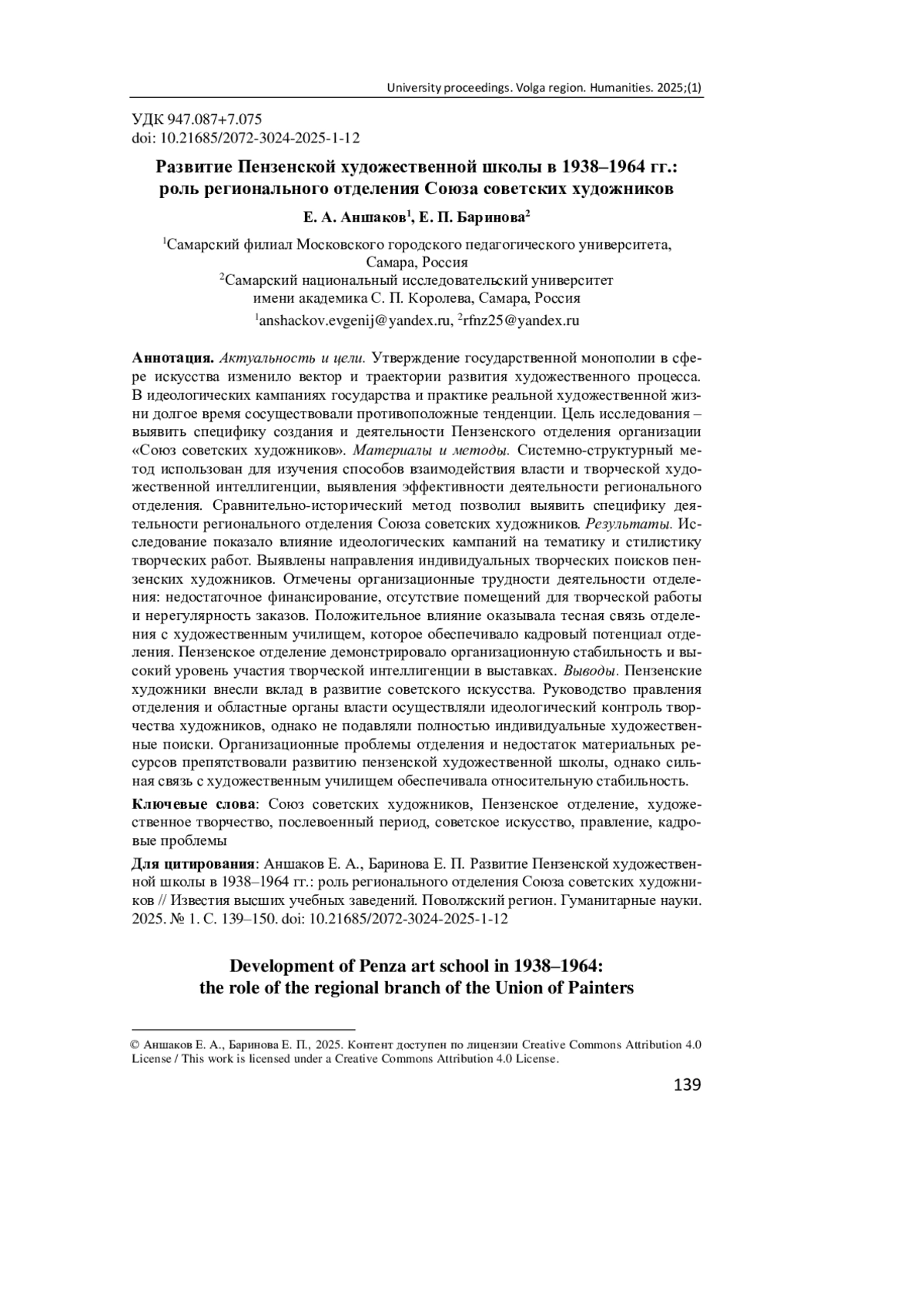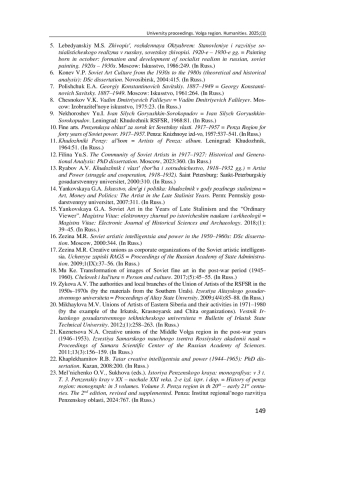 19. Зыкова А. В. Власть и местные отделения Союза художников РСФСР в 1950-1970-е гг. (на материалах Южного Урала) // Известия Алтайского государственного университета. 2009. № 4/4 (64). С. 85-88. EDN: MUEOFT