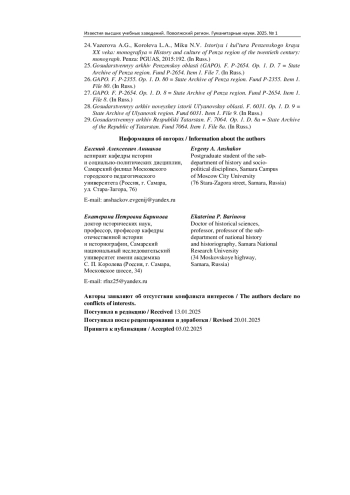 24. Вазерова А. Г., Королева Л. А., Мику Н. В. История и культура Пензенского края XX века: монография. Пенза: ПГУАС, 2015. 192 с. EDN: YPADYL