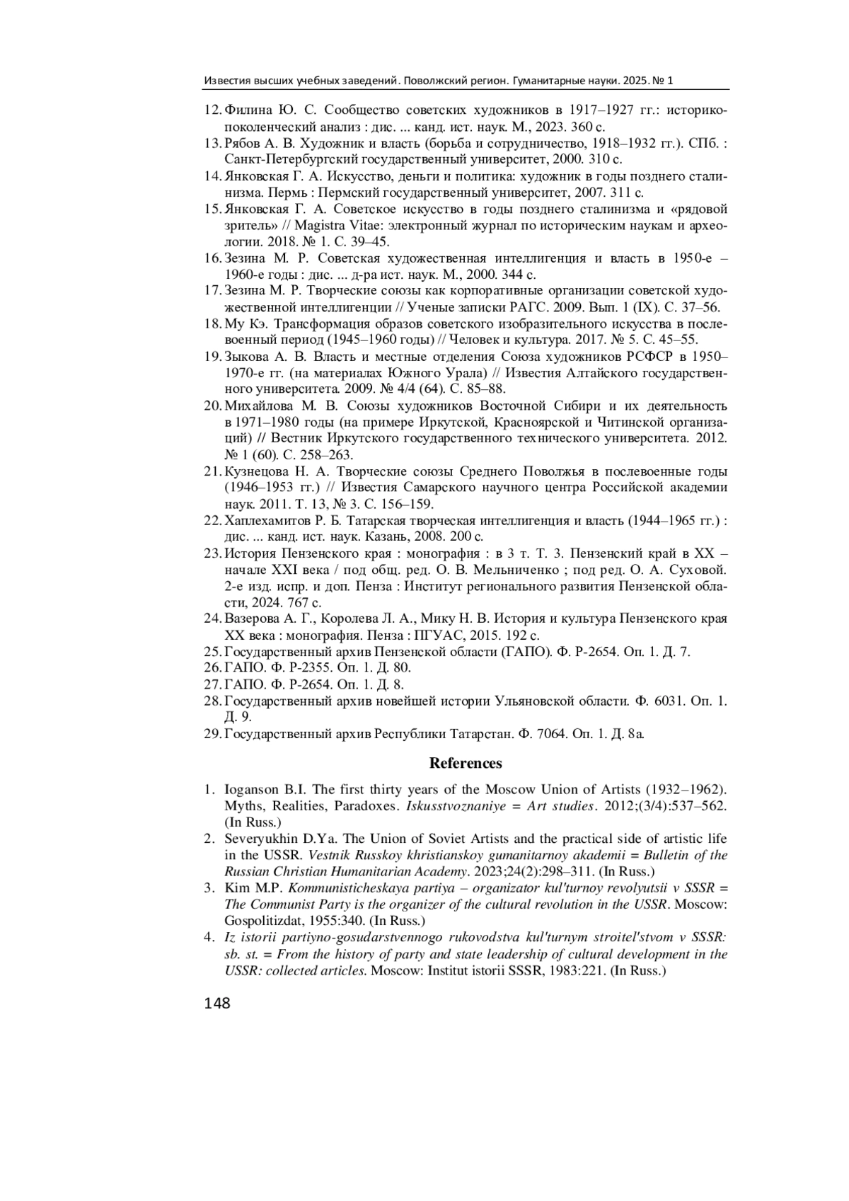 21. Кузнецова Н. А. Творческие союзы Среднего Поволжья в послевоенные годы (1946-1953 гг.) // Известия Самарского научного центра Российской академии наук. 2011. Т. 13, № 3. С. 156-159. EDN: NXKHBF