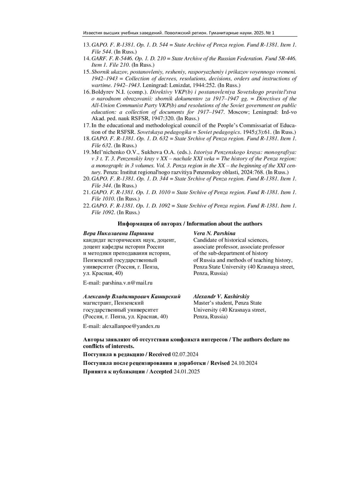 12. Государственный архив Пензенской области (ГАПО). Ф. Р-1381. Оп. 1. Д. 1008.