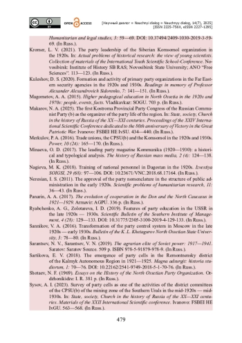 32. Туфанов Е. В. Партийные организации РКП(б)-ВКП(б) Юго-востока России 1920-е гг. : организационно-кадровый потенциал / Е. В. Туфанов, Ю. А. Яхутль // Гуманитарные и юридические исследования. - 2024. - Выпуск 4. - Т. 11. - С. 715-722. - https://doi.org/10.37493/2409-1030.2024.4.13.