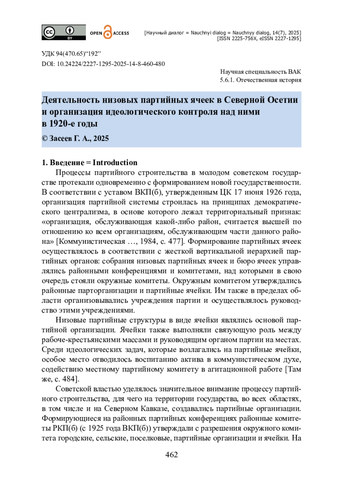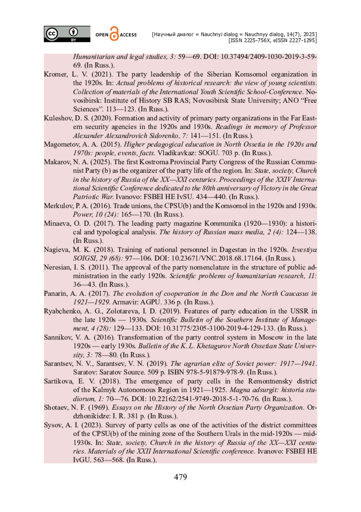 1. Батагова Х. Б. Деятельность партийных и советских органов власти Северной Осетии по допризывной подготовке молодежи в 1920-1930 гг. / Х. Б. Батагова // Вестник владикавказского научного центра. - 2022. - Выпуск 1. - С. 45-49. - https://doi.org/10.46698/VNC.2022.58.84.001.