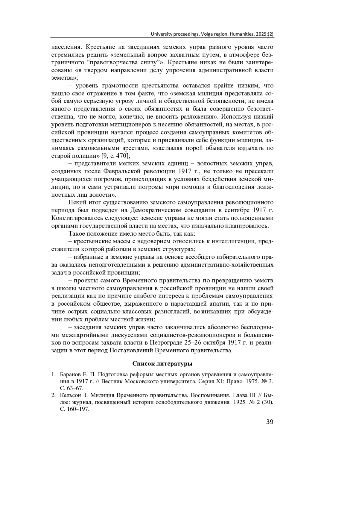 1. Баранов Е. П. Подготовка реформы местных органов управления и самоуправления в 1917 г. // Вестник Московского университета. Серия ХI: Право. 1975. № 3. С. 63-67.