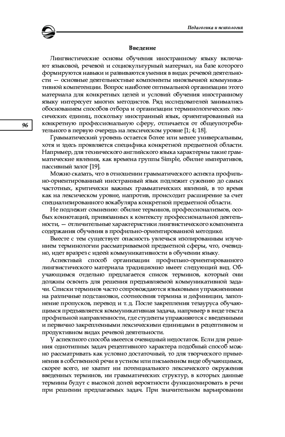 1. Алешугина Е. А. Способы отбора лексического содержания профессионально-ориентированной иноязычной подготовки студентов в неязыковом вузе: дис. … канд. пед. наук. Н. Новгород, 2009. EDN: NQJPBF