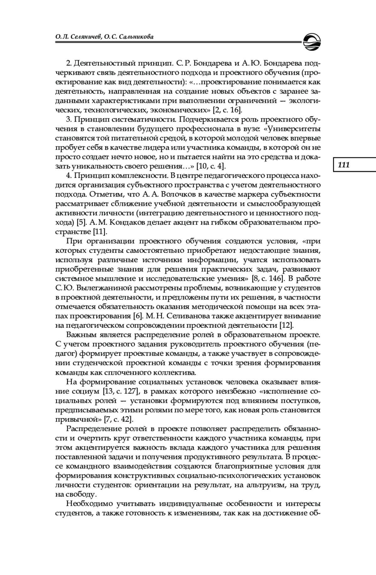 12. Селиванова М. Н. Педагогическое сопровождение учебной проектной деятельности // Образование. Карьера. Общество. 2019. № 2 (61). С. 30-32. EDN: HQBUPC