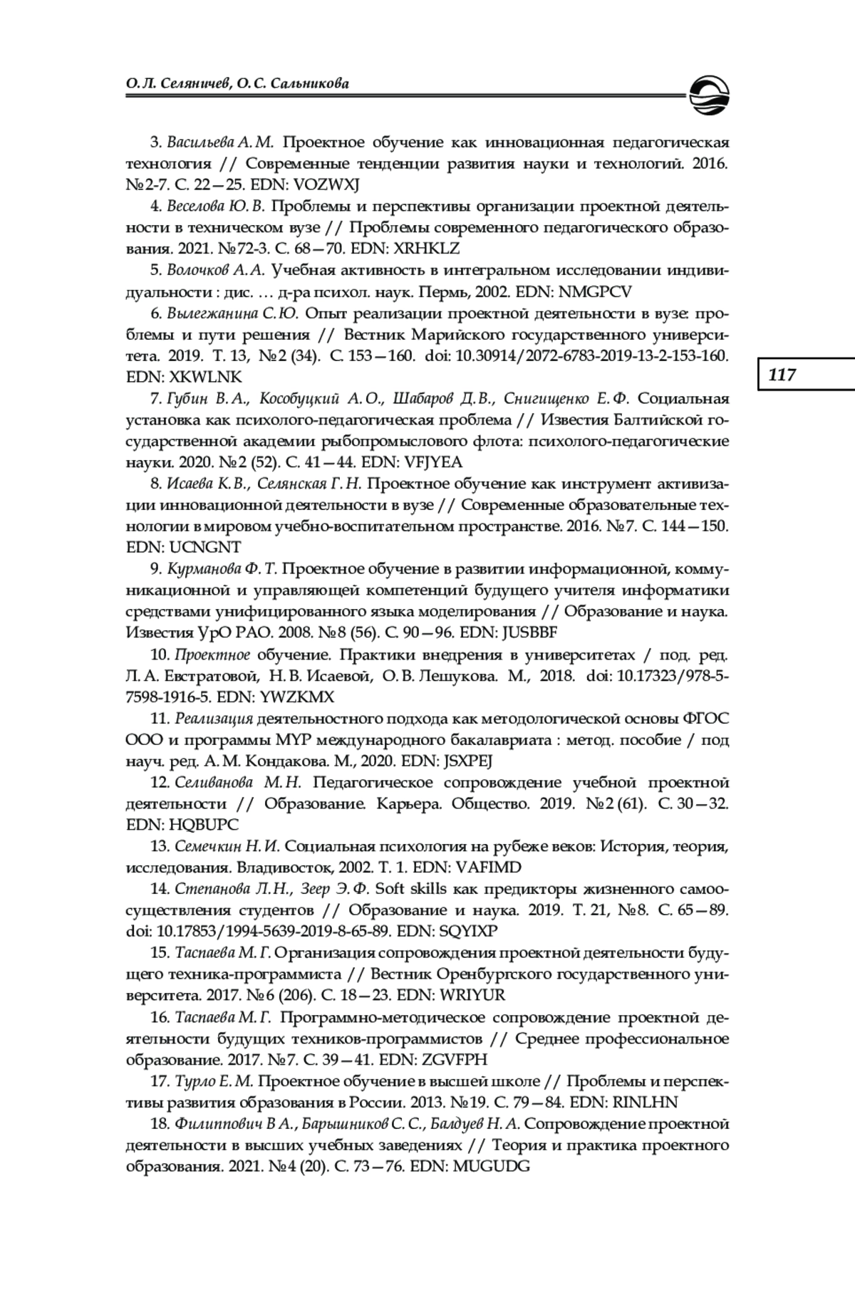 14. Степанова Л. Н., Зеер Э. Ф. Soft skills как предикторы жизненного самоосуществления студентов // Образование и наука. 2019. Т. 21, № 8. С. 65-89. DOI: 10.17853/1994-5639-2019-8-65-89 EDN: SQYIXP