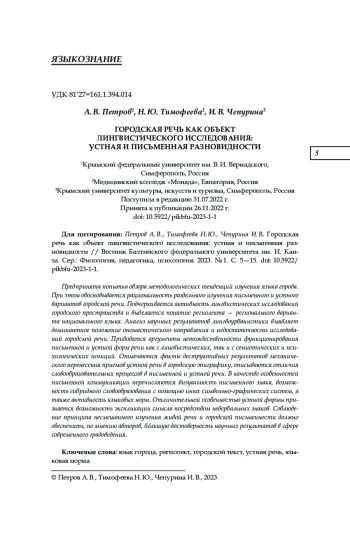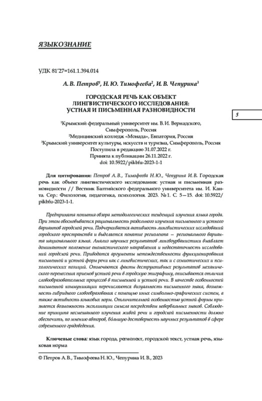 30. Петров А. В. Реализация творческого потенциала в речи крымчан // Современная картина мира: крымский контекст. Симферополь, 2017. С. 45-68. EDN: XVWNAP