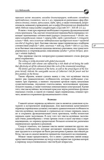 9. Рябкова И. П., Дерюгина А. А. Искусствоведческий текст как объект перевода (на материале музейных текстов на русском, английском и финском языках) // Многоязычие в образовательном пространстве. 2020. № 12. С. 135-141. EDN: HXQPMG