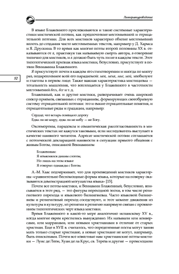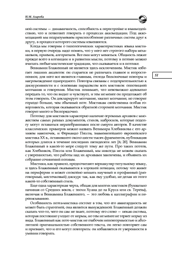 Язык мистиков — это культурная система, поэтому язык мистиков разных эпох, видоизменяясь и приспосабливаясь к уже существующим культурным системам, тем не менее обнаруживает явное типологическое единство. И если мы посмотрим на поэзию Вениамина Блаженного, не приписывая ее к определенной парадигме, то увидим очень много черт данного языка. Под культурной системой мы понимаем способную к самоорганизации систему, в которой по определенным правилам циркулирует информация, прежде всего языковая [14] (в данной статье мы не раз будем обращаться к этому труду).