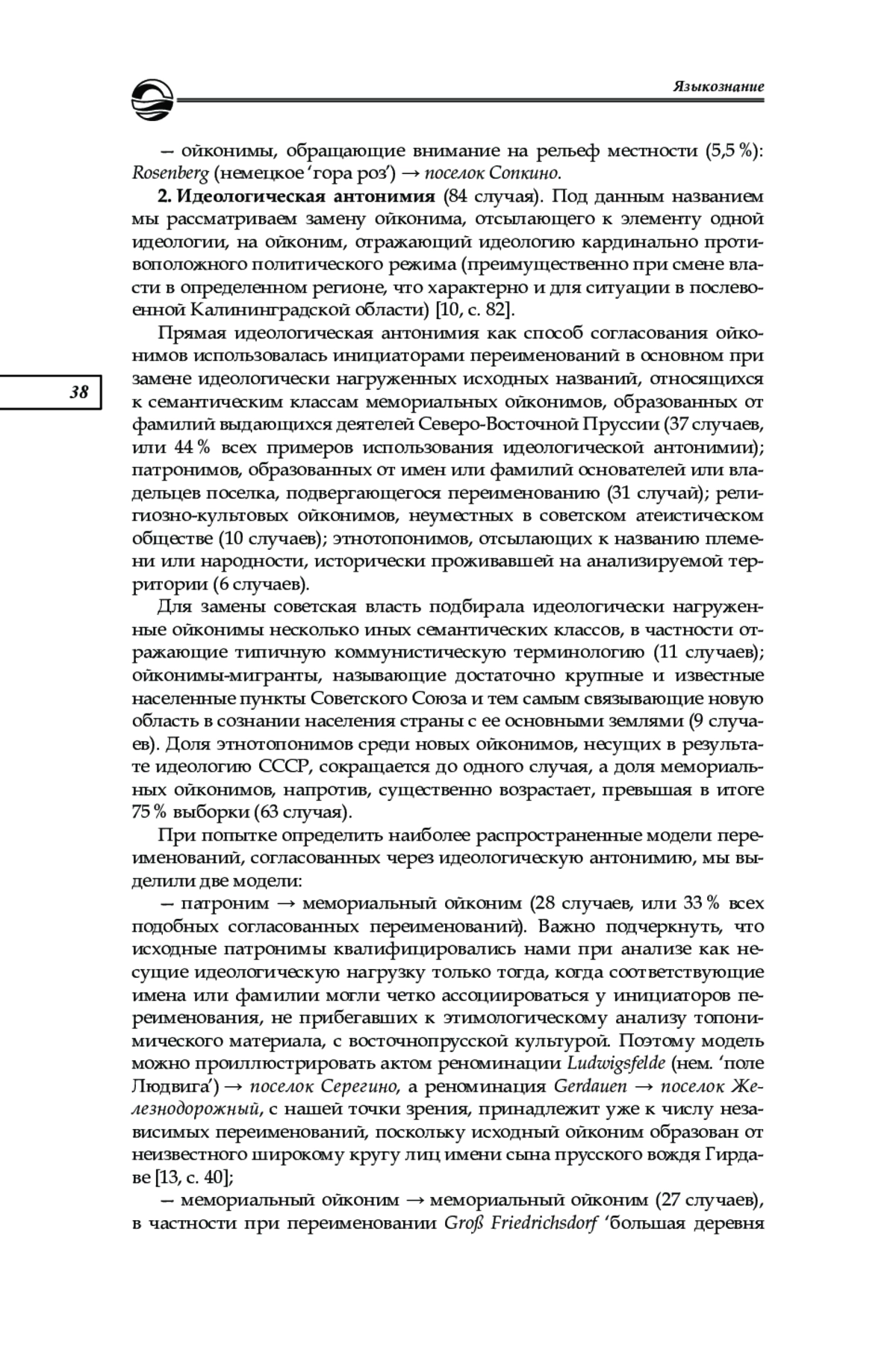 3. Крюков П. А. Роль экстралингвистического фактора в формировании немецкого топонимикона (на примере идеологической компоненты в Северной и Восточной Германии в период с 1933 по 1990-е гг.) // Вестник Московского государственного областного университета. Сер. Лингвистика. 2011. № 6. С. 133-138. EDN: OXBIGH