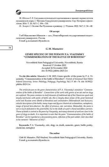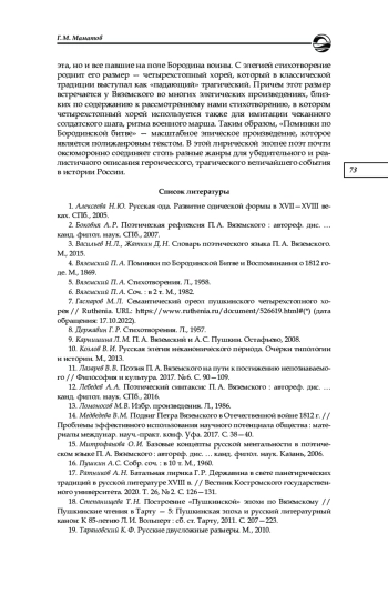 12. Лебедев А. А. Поэтический синтаксис П. А. Вяземского: автореф. дис. … канд. филол. наук. СПб., 2016. EDN: ZPYTXN