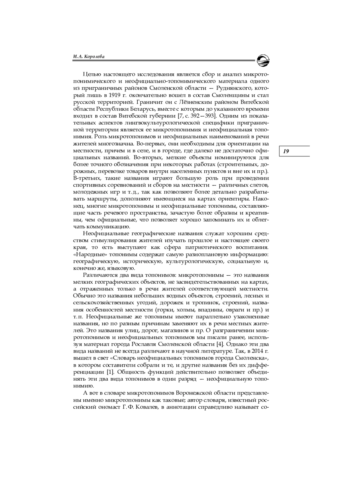 4. Королева И. А. Микротопонимы и неофициальные региональные топонимы (к постановке вопроса) // Известия Смоленского государственного университета. 2016. № 4 (36). С. 94-103. EDN: XXHTQB