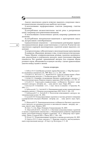 4. Белова Е. В. Структурно-содержательные особенности бытового конфликтного дискурса: автореф. дис. … канд. филол. наук. Тверь, 2016. EDN: ZQADBT