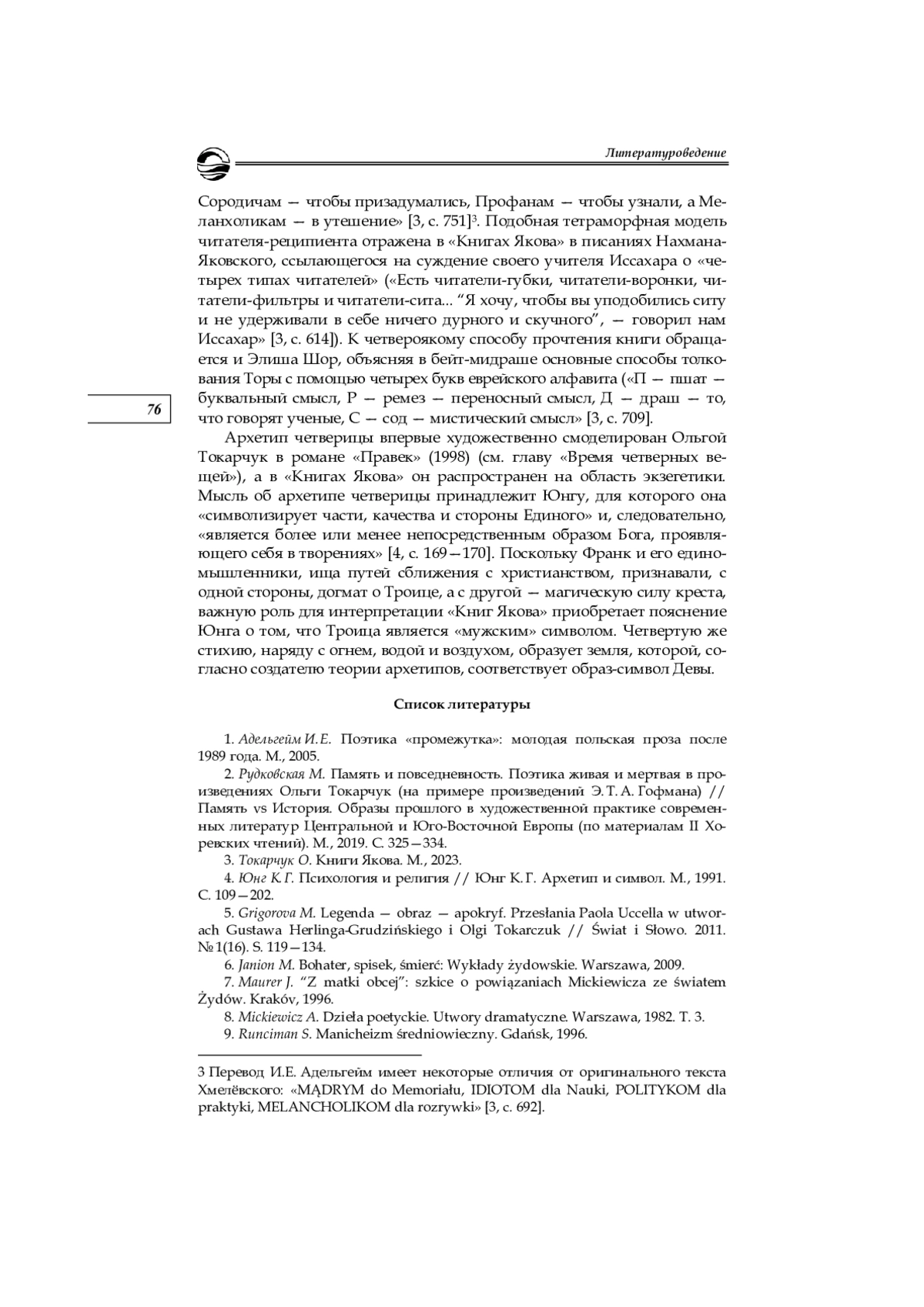 1. Адельгейм И. Е. Поэтика “промежутка”: молодая польская проза после 1989 года. М., 2005. EDN: QRRMST