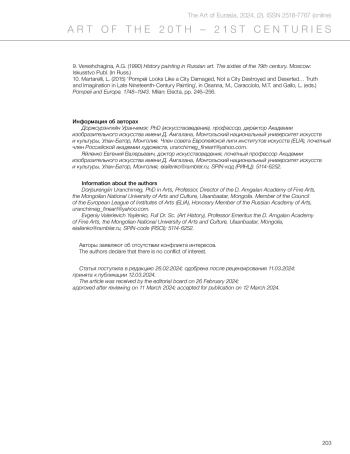 9. Vereshchagina, A.G. (1990) History painting in Russian art. The sixties of the 19th century. Moscow: Iskusstvo Publ. (In Russ.)
