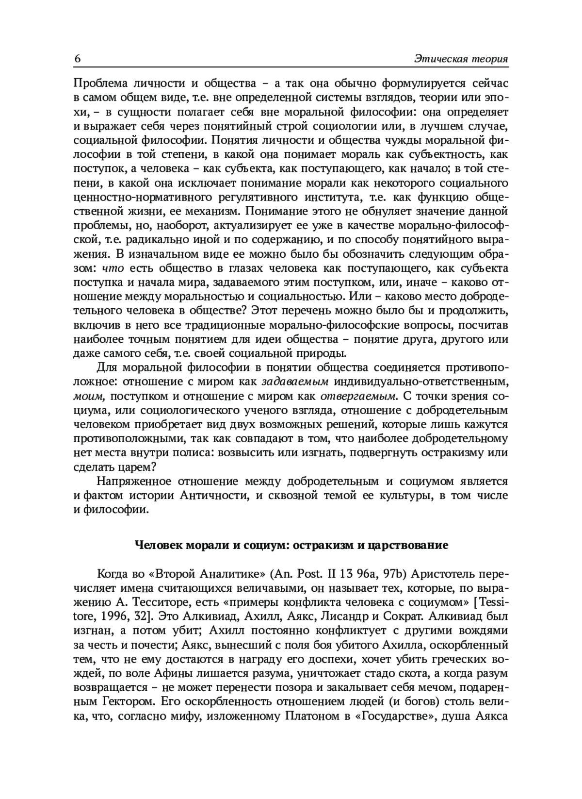 Проблема личности и общества – а так она обычно формулируется сейчас в самом общем виде, т. е. вне определенной системы взглядов, теории или эпохи, – в сущности полагает себя вне моральной философии: она определяет и выражает себя через понятийный строй социологии или, в лучшем случае, социальной философии. Понятия личности и общества чужды моральной философии в той степени, в какой она понимает мораль как субъектность, как поступок, а человека – как субъекта, как поступающего, как начало; в той степени, в какой она исключает понимание морали как некоторого социального ценностно-нормативного регулятивного института, т. е. как функцию общественной жизни, ее механизм. Понимание этого не обнуляет значение данной проблемы, но, наоборот, актуализирует ее уже в качестве морально-философской, т. е. радикально иной и по содержанию, и по способу понятийного выражения. В изначальном виде ее можно было бы обозначить следующим образом: что есть общество в глазах человека как поступающего, как субъекта поступка и начала мира, задаваемого этим поступком, или, иначе – каково отношение между моральностью и социальностью. Или – каково место добродетельного человека в обществе? Этот перечень можно было бы и продолжить, включив в него все традиционные морально-философские вопросы, посчитав наиболее точным понятием для идеи общества – понятие друга, другого или даже самого себя, т. е. своей социальной природы.
