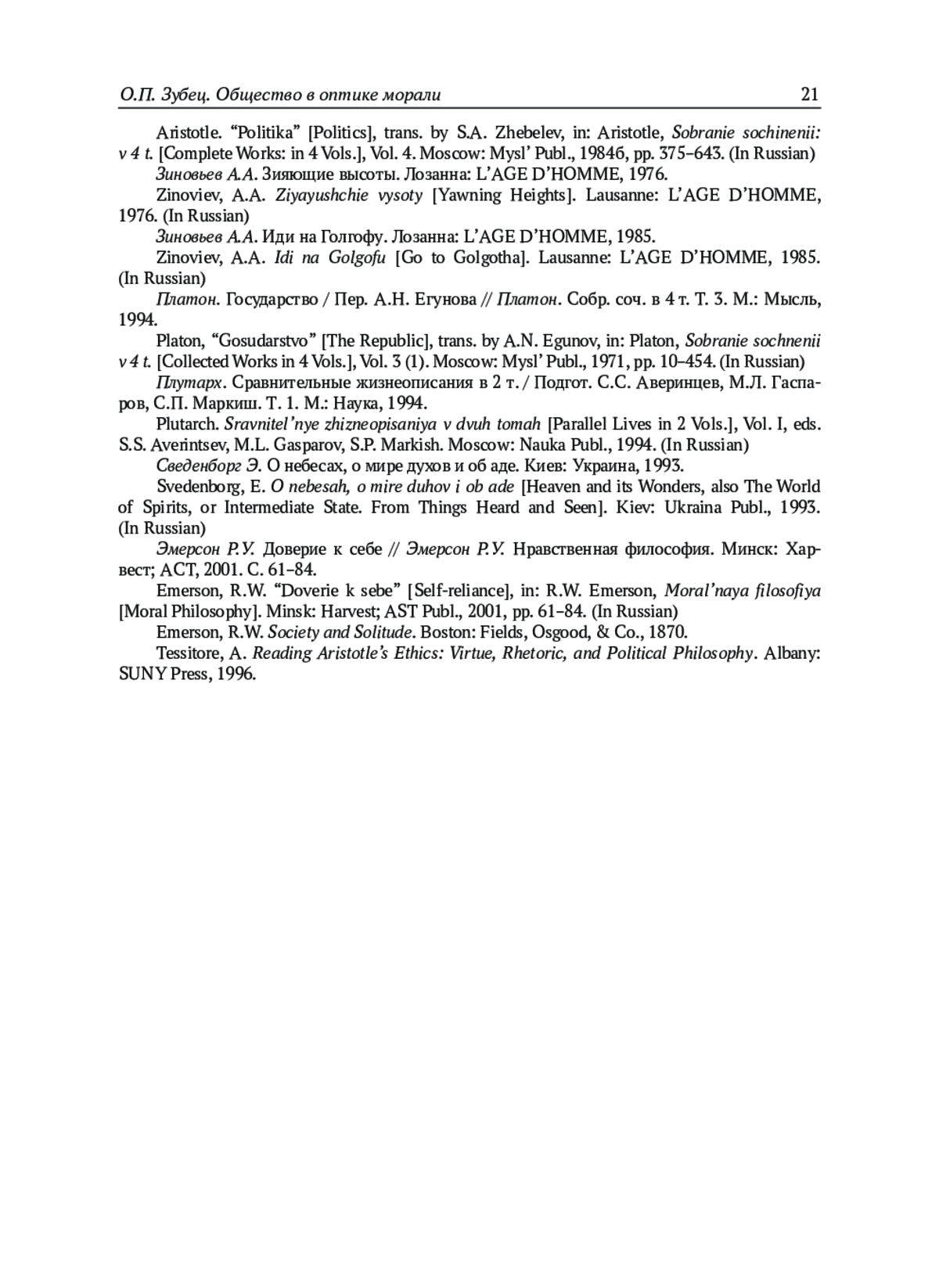 5. Зиновьев А.А. Зияющие высоты. Лозанна: L’AGE D’HOMME, 1976.
