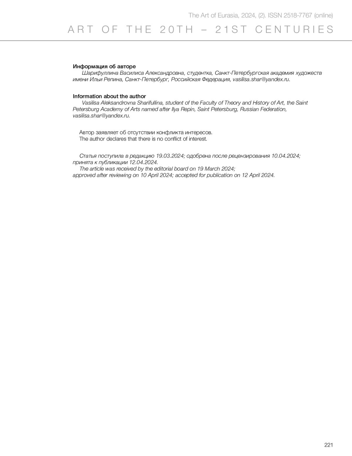 [Электронный журнал]. 2024. No 2 (33). С. 204–221. https://doi.org/10.46748/ARTEURAS.2024.02.014.