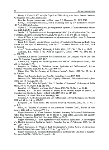 12. Середа Д.С. Эгалитаризм удачи: два направления критики // Социологическое обозрение. 2021. Т. 20. № 2. С. 273-289.