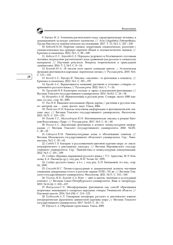 17. Пак И. Я. Языковое воплощение образа дерева / растения в русском языке: автореф. дис. … канд. филол. наук. Томск, 2006. EDN: NKHVDP