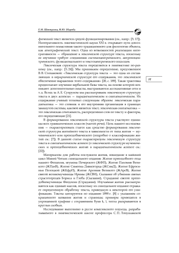 Изучение житийных текстов имеет глубокую филологическую традицию, однако и сегодня они привлекают внимание языковедов. Современные публикации посвящены методологическим проблемам исследования агиографии [16], выявлению жанровой и стилевой специфики агиографических текстов [2; 11; 13; 23], их структурно-грамматических особенностей [10; 13], реализации текстовых категорий [6; 9] и экспликации ценностных установок [1; 4; 14].