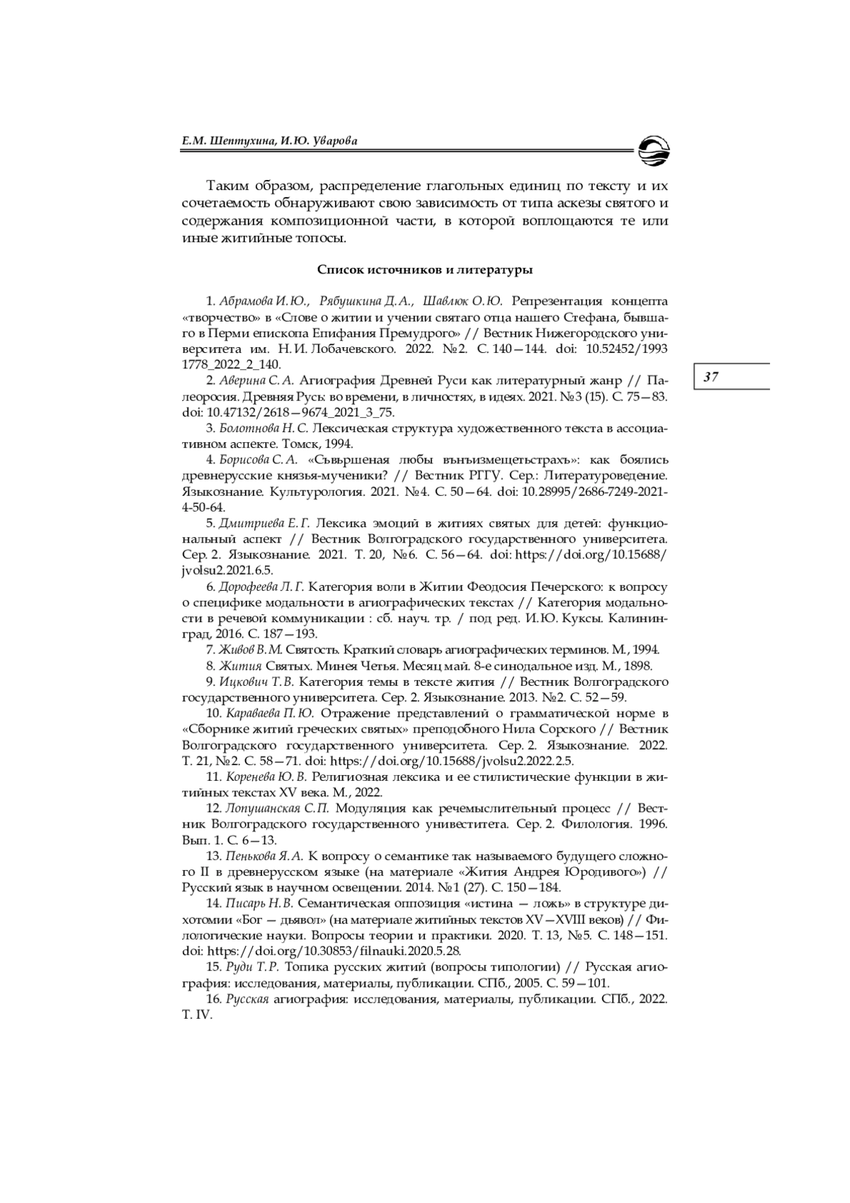 10. Караваева П. Ю. Отражение представлений о грамматической норме в “Сборнике житий греческих святых” преподобного Нила Сорского // Вестник Волгоградского государственного университета. Сер. 2. Языкознание. 2022. Т. 21, № 2. С. 58-71. DOI: 10.15688/jvolsu2.2022.2.5 EDN: VZXTUA