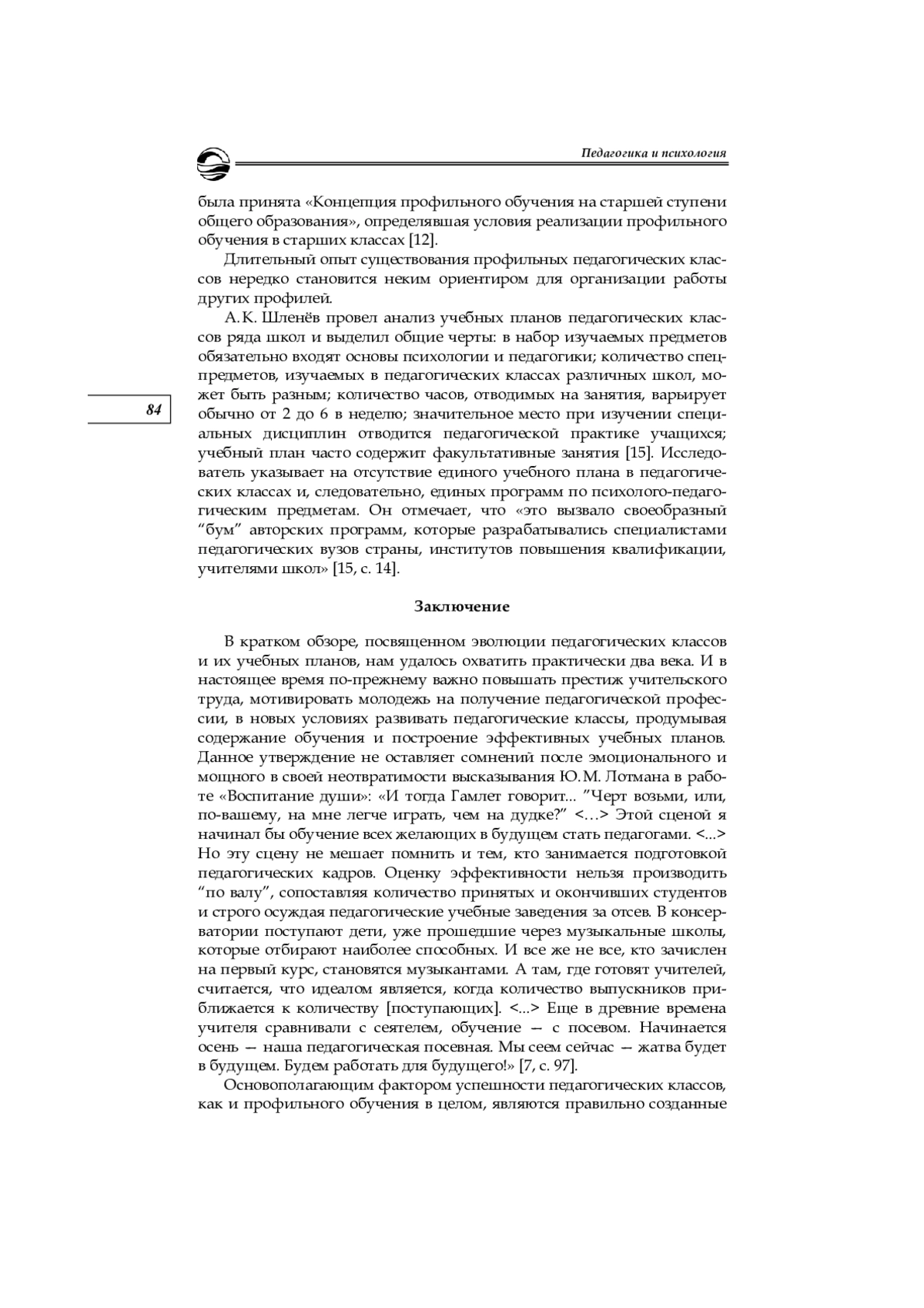 15. Шленёв А. К. Педагогический класс как субъект воспитательной системы школы: автореф. дис. … канд. пед. наук. Ярославль, 2000. EDN: NLWOVD
