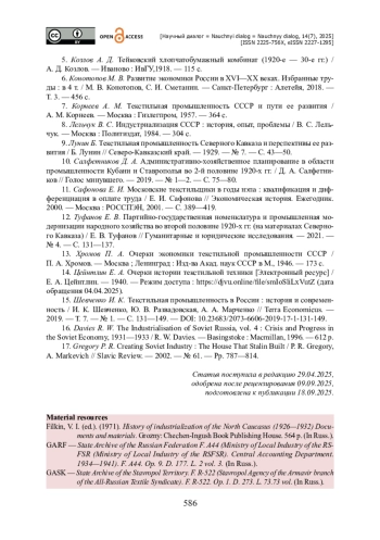 9. Лунин Б. Текстильная промышленность Северного Кавказа и перспективы ее развития / Б. Лунин // Северо-Кавказский край. - 1929. - № 7. - С. 43-50.