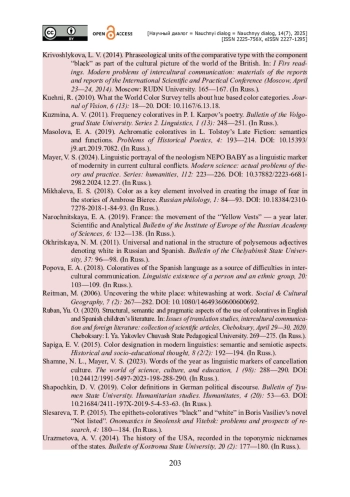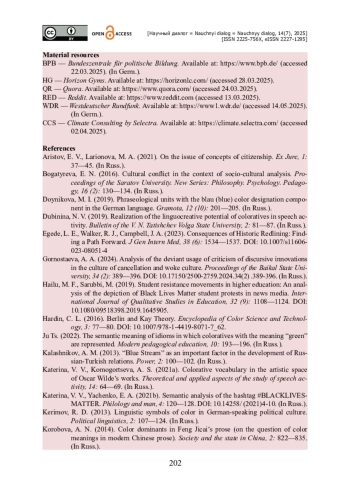 11. Катермина В. В. Семантический анализ хештега BLACKLIVESMATTER / В. В. Катермина, Е. А. Яченко // Филология и человек. - 2021б. - № 4. - С. 120- 128. - https://doi.org/10.14258/(2021)4-10.