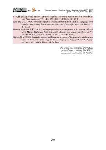 8. Зимина Н. В. Семантические особенности и лингвосимволика немецких цветообозначений weiß, schwarz, blau, grün, rot, gelb / Н. В. Зимина // Известия Волгоградского государственного педагогического университета. - 2019. - № 9 (142). - С. 184-190.